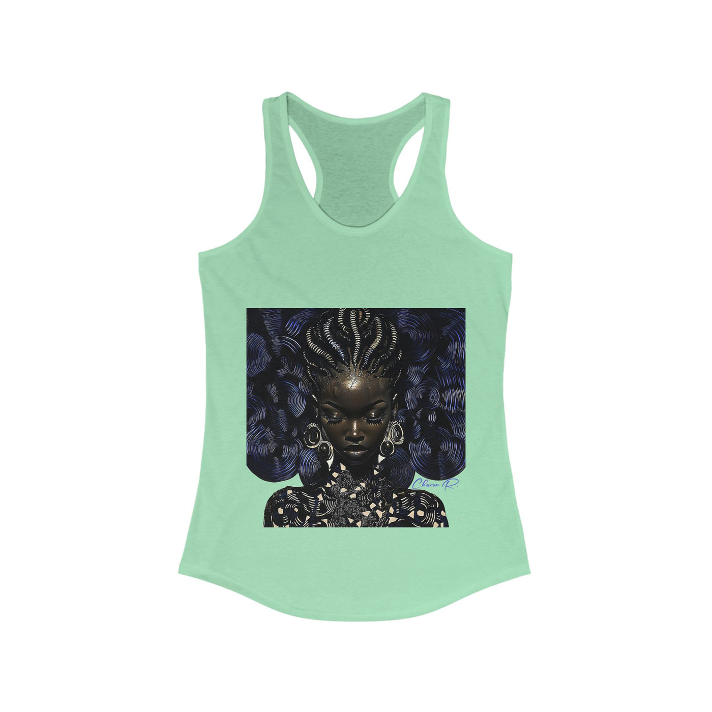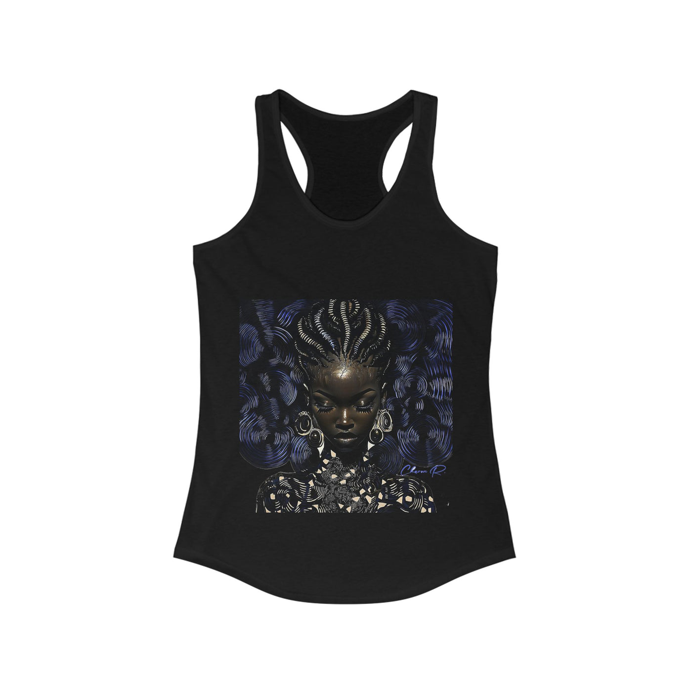 This Luxe Leisure design honors the mystery, mastery, and magnitude of Black womanhood in its most regal form. Her eyes may be closed, but don’t get it twisted—she sees everything. The gold coils across her scalp are not just adornment; they are data. Downloaded from those who came before. Her aura? Ancient. Her presence? Cosmic. And her silence? Louder than any crown.