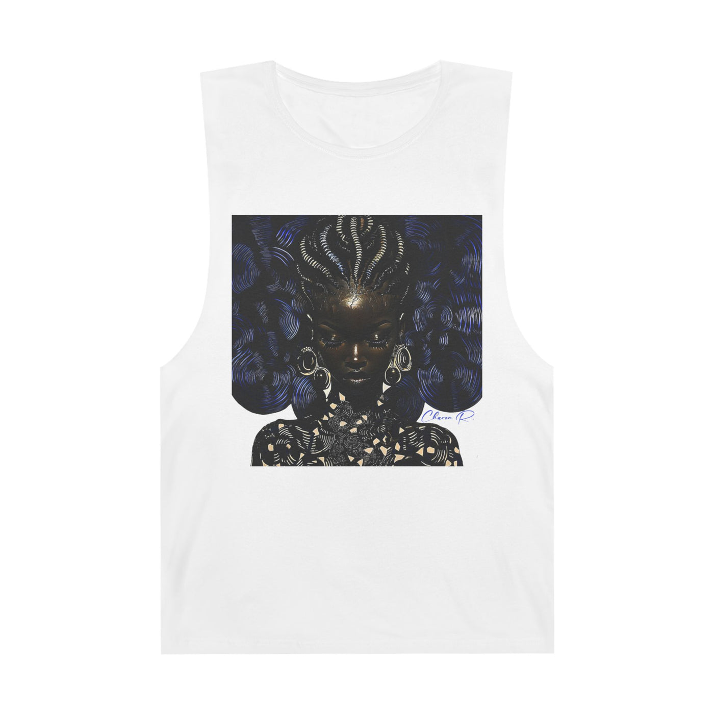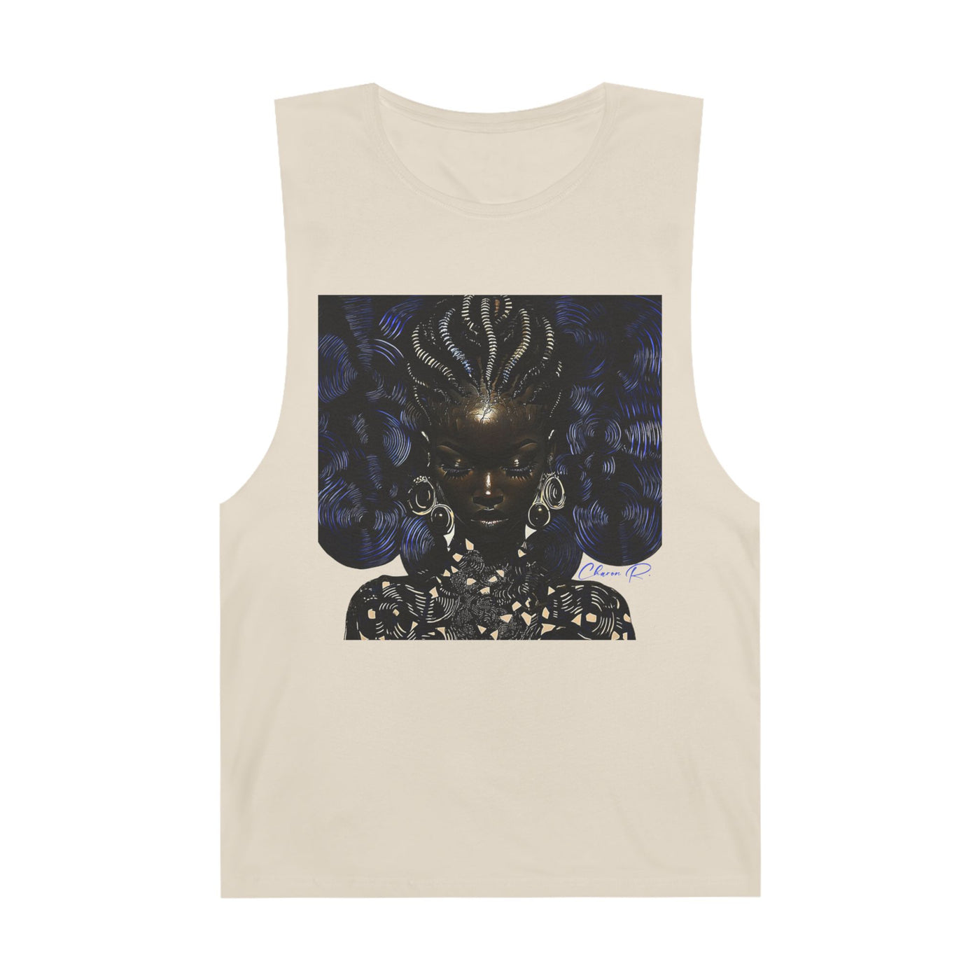 This Luxe Leisure design honors the mystery, mastery, and magnitude of Black womanhood in its most regal form. Her eyes may be closed, but don’t get it twisted—she sees everything. The gold coils across her scalp are not just adornment; they are data. Downloaded from those who came before. Her aura? Ancient. Her presence? Cosmic. And her silence? Louder than any crown.